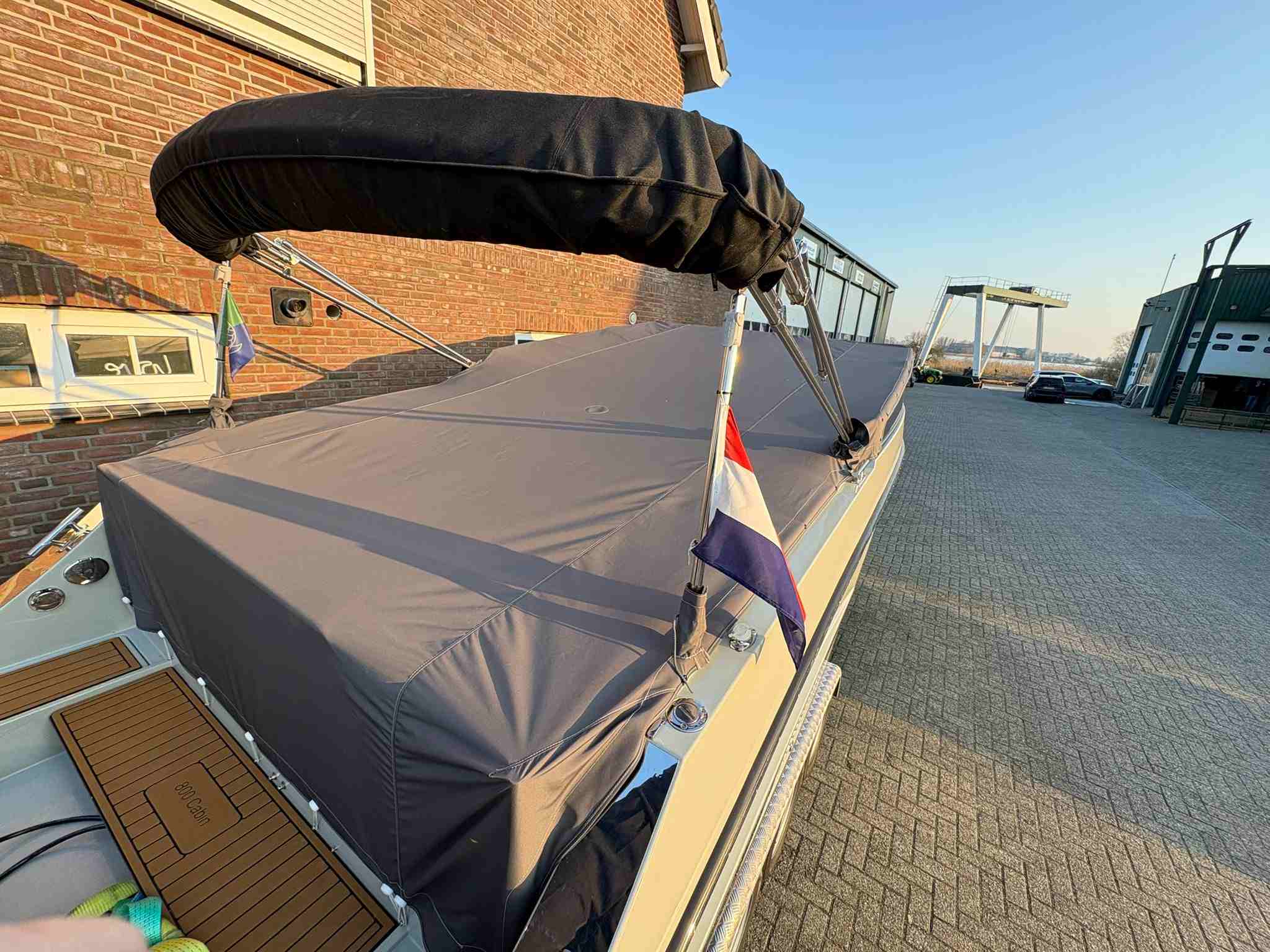 Het ontwerp van de Maxima 800 cabine is gericht op comfort en functionaliteit. De ruime cockpit heeft een dubbele bestuurdersbank, zodat de bestuurder en passagier comfortabel en in stijl kunnen genieten. In het hart van de cockpit is een royale zithoek, perfect om te socializen of gasten te ontvangen. Op het voordek van de Maxima 800 Cabin staat een zonnebed, een ideale plek om te ontspannen en van de zon te genieten. De cockpit is uitgerust met een lounge, zodat je ontspannen kunt genieten van het uitzicht en de omgeving.